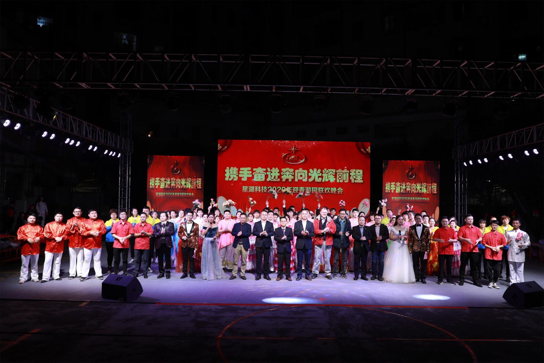1月13日晚,公司在生化制藥廠廠區(qū)舉辦了主題為“攜手奮進(jìn)奔向光輝前程”的2020年迎春游園聯(lián)歡晚會?!靶呛萍既恕毕矚庋笱蟮赜瓉砹俗约旱拇和?。公司黨委書記、董事長兼總經(jīng)理陳武,黨委副書記、工會主席吳柱鑫,副總經(jīng)理張番平、李建軍、應(yīng)軍等在家的公司領(lǐng)導(dǎo)和各廠各部門的管理人員與一千多員工及家屬歡聚一堂,共迎新春。晚會自始至終熱鬧喜慶、歡樂洋溢。